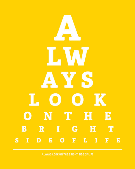 Always Look On The Bright Side Of Life, eye chart art print (sunshine yellow)