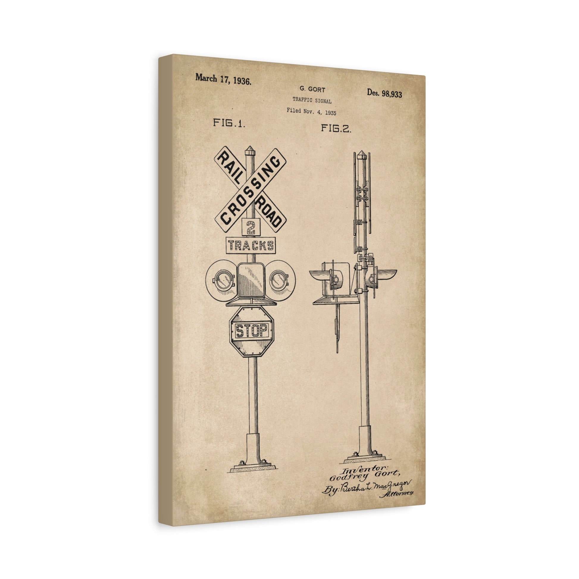 Railroad Crossing Signal Patent Canvas Wall Art