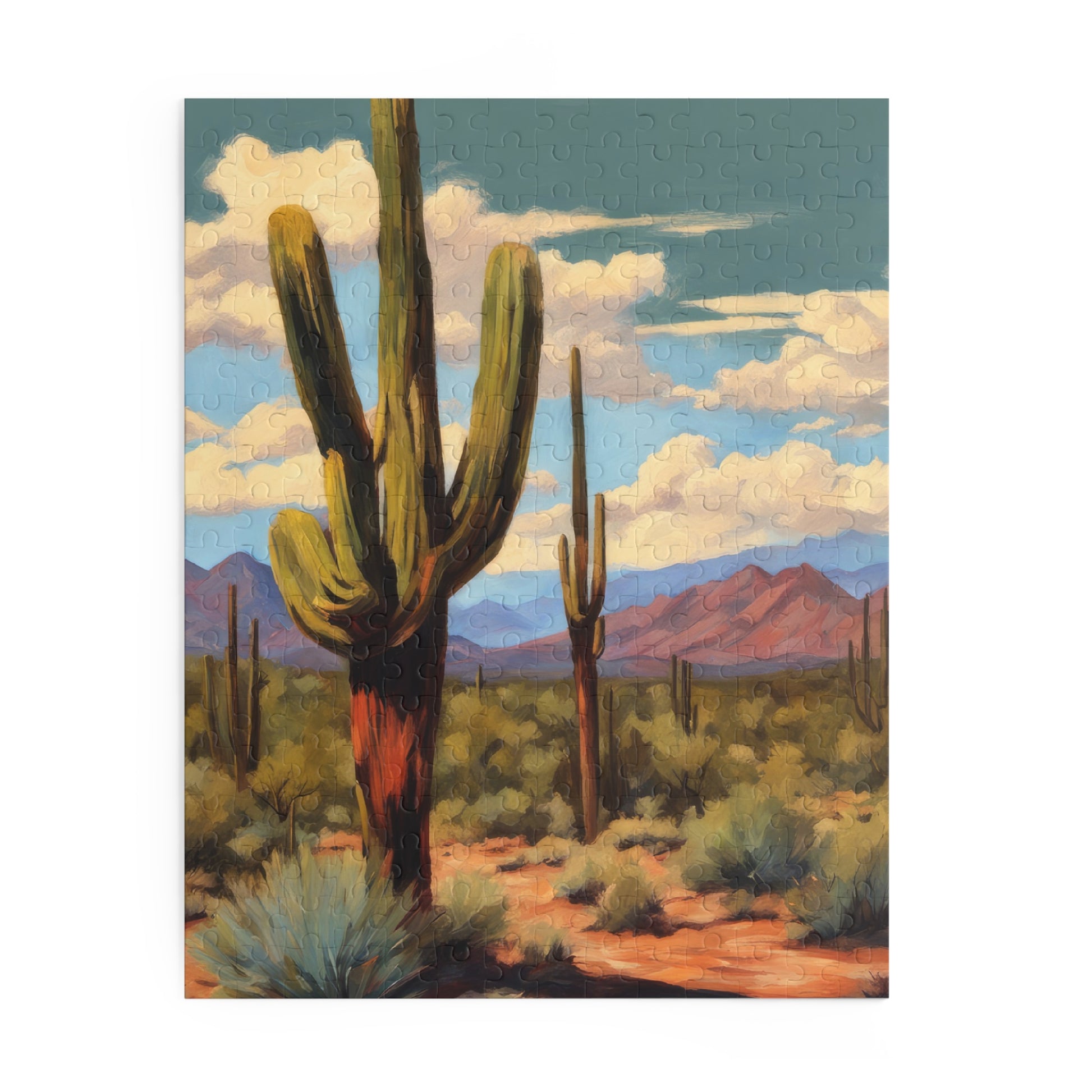 Saguaro Cactus in Mesa Arizona Acrylic Painting Jigsaw Puzzle