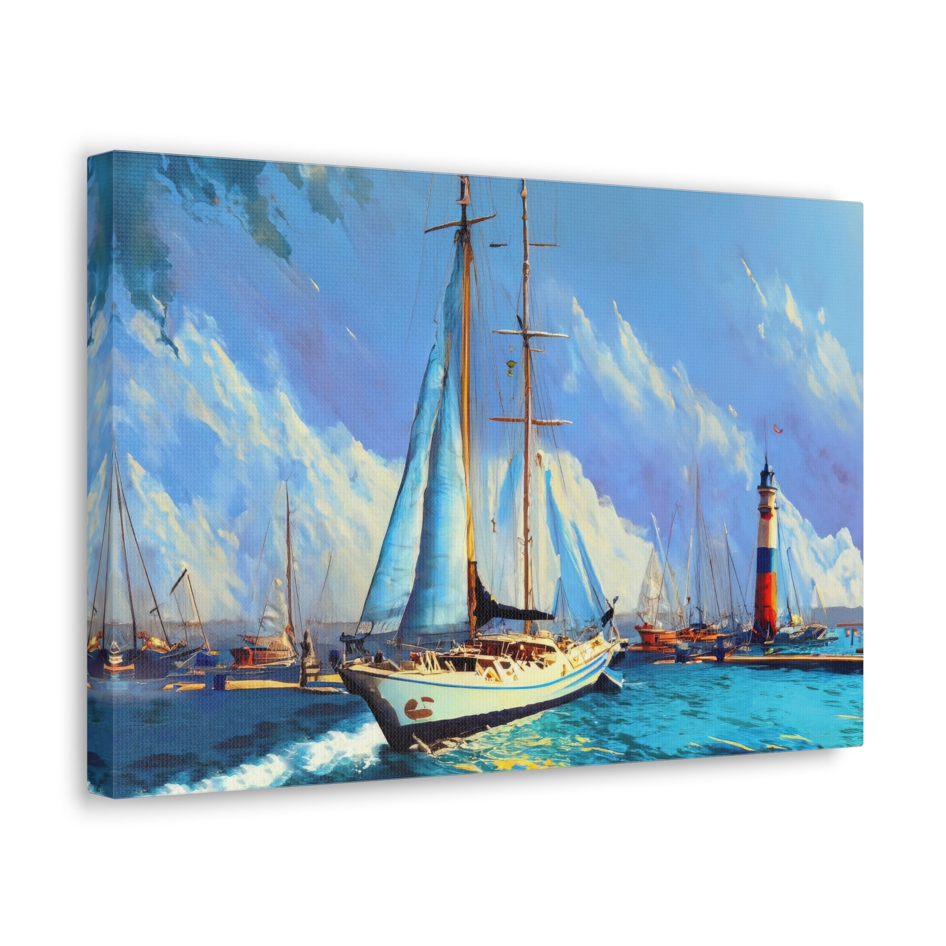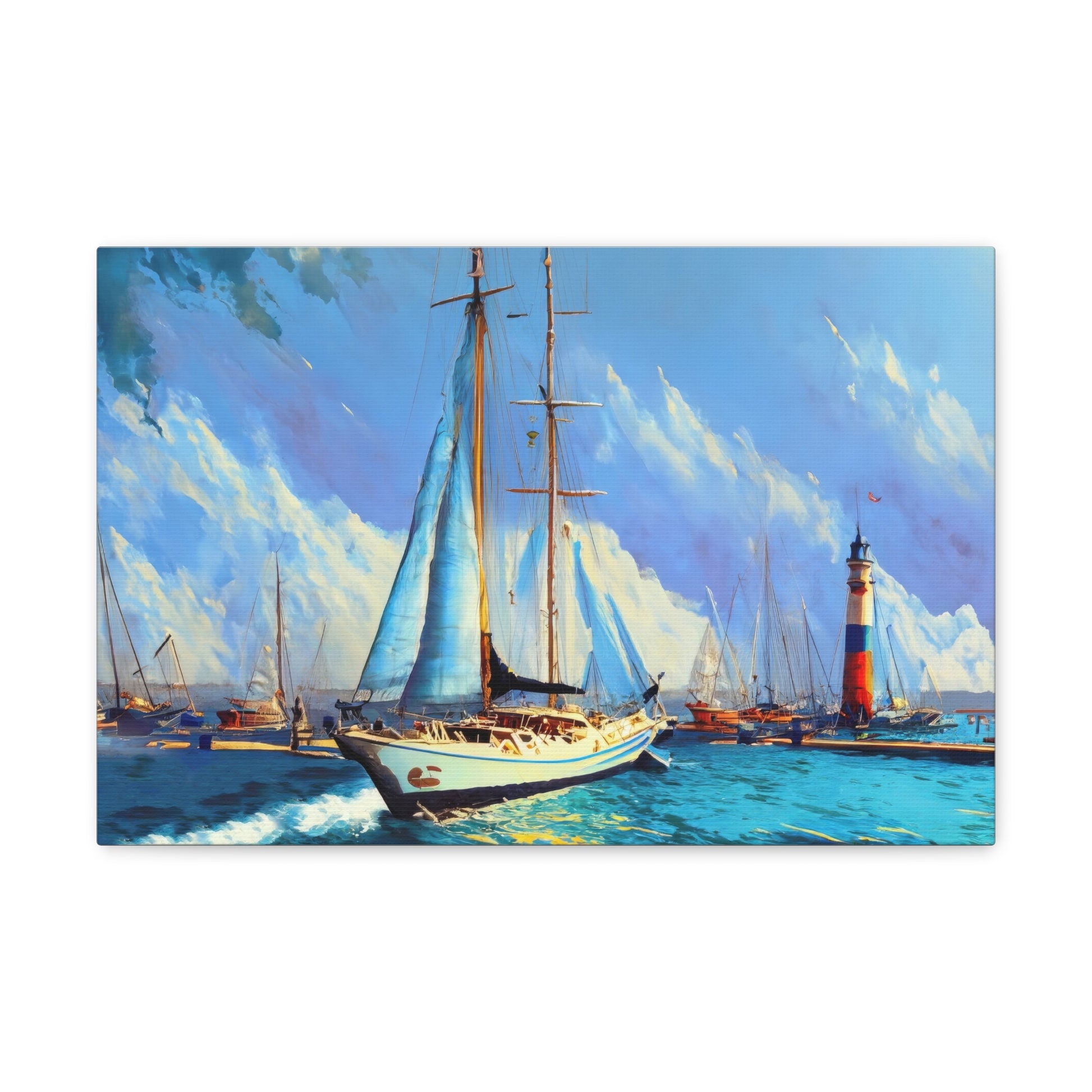 Sailboat and Lighthouse Oil Painting Canvas Print