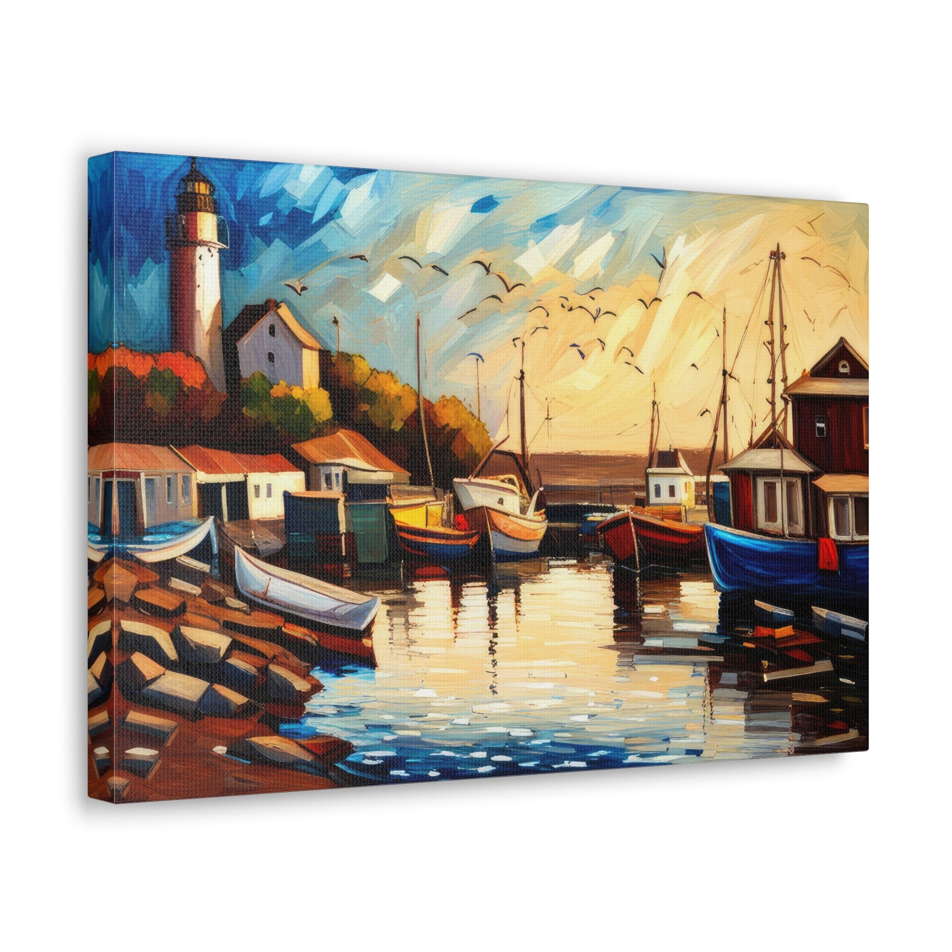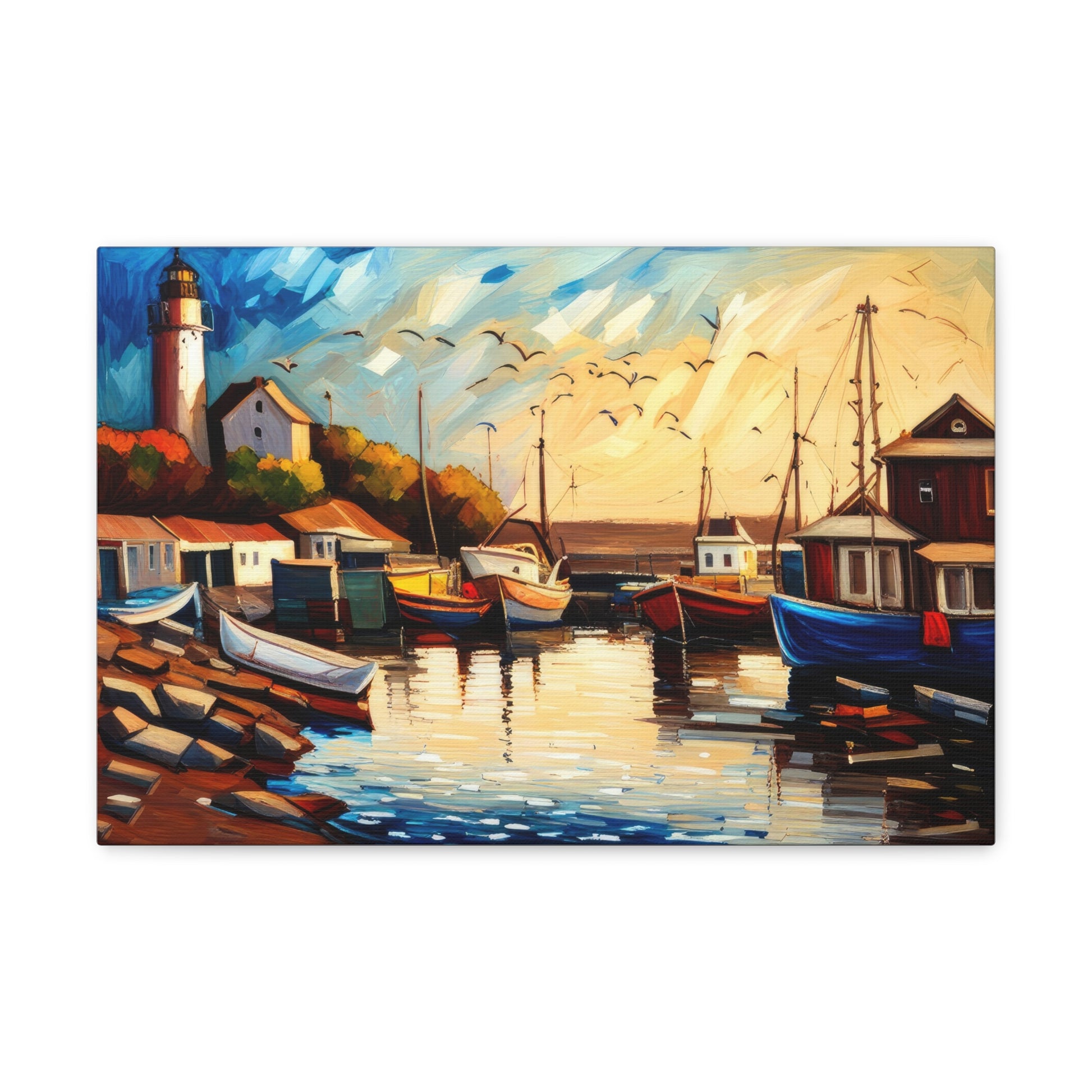 Tranquil Harbor Seascape Oil Painting Canvas Print