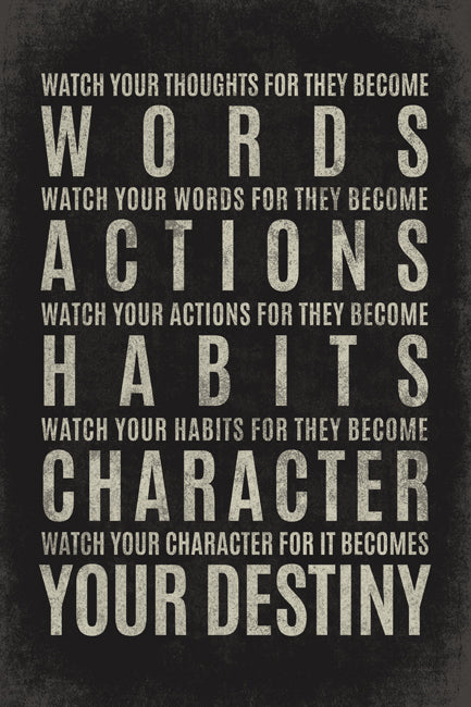 Quote reads: Watch your thoughts for they become words. Watch your words for they become actions. Watch your actions for they become habits. Watch your habits for they become character. Watch your character for it becomes your destiny.