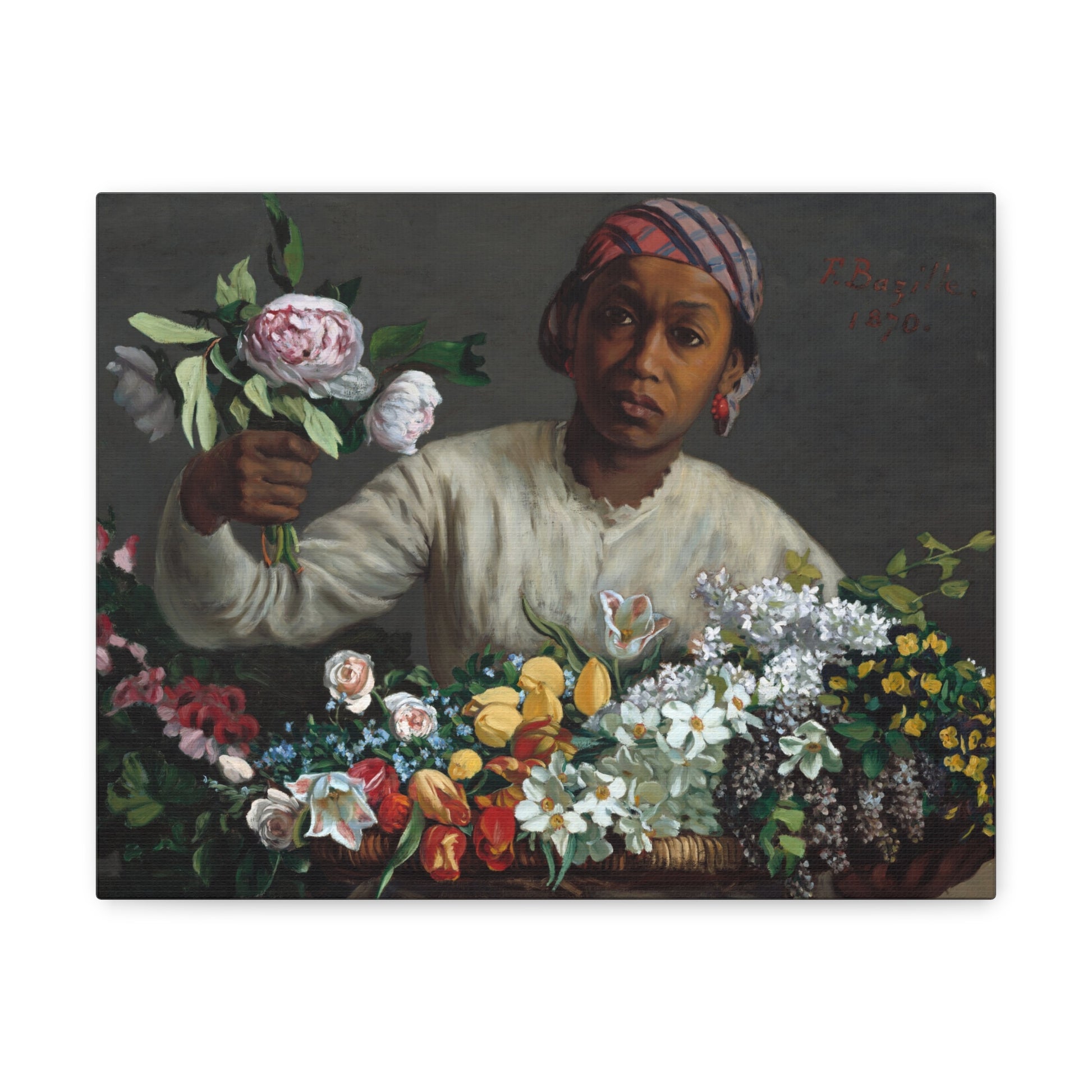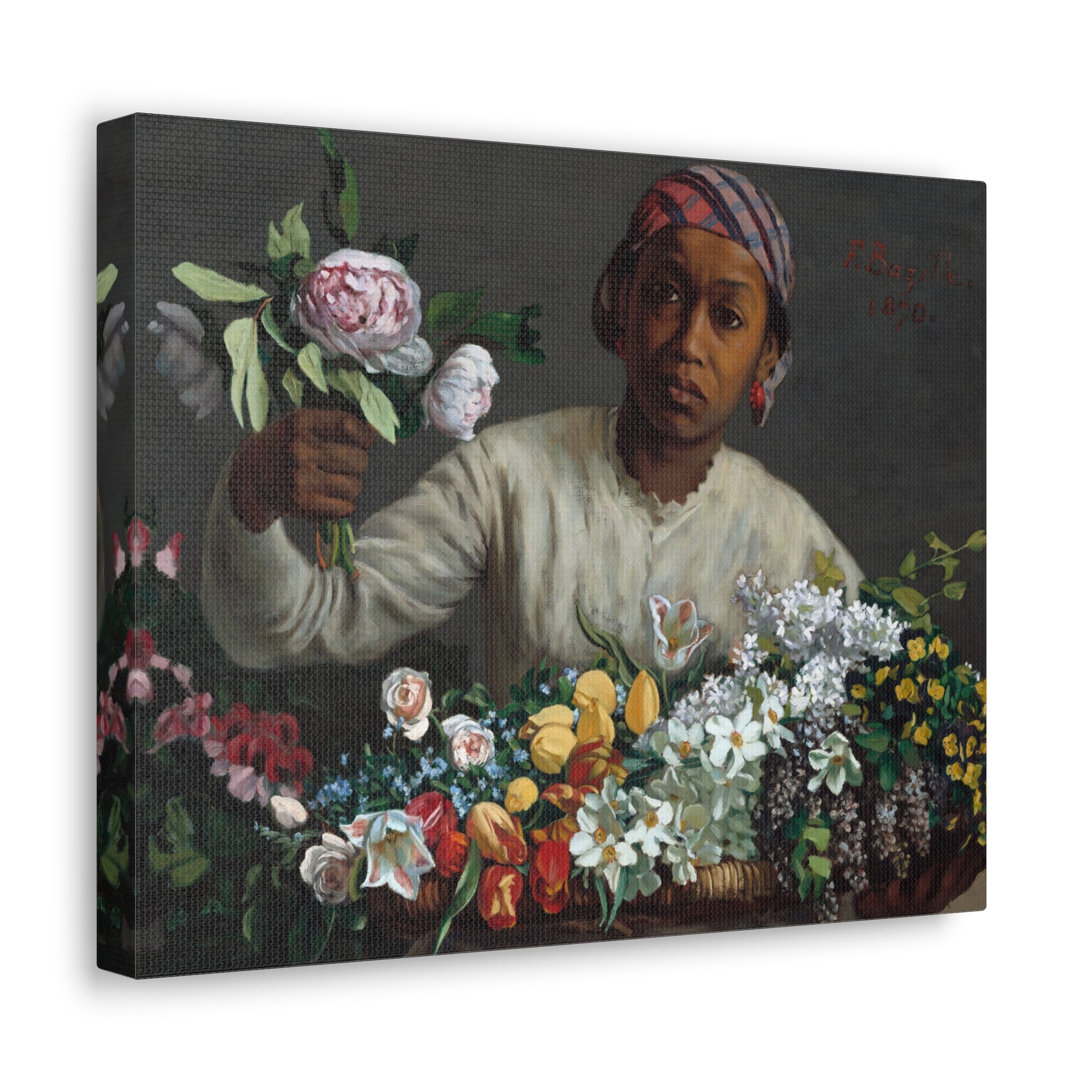 Young Woman with Peonies by Frederic Bazille Canvas Print
